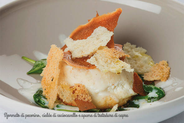 SFORMATO DI PECORINO, CIALDE DI CACIOCAVALLO E SPUMA DI TESTADURA DI CAPRA