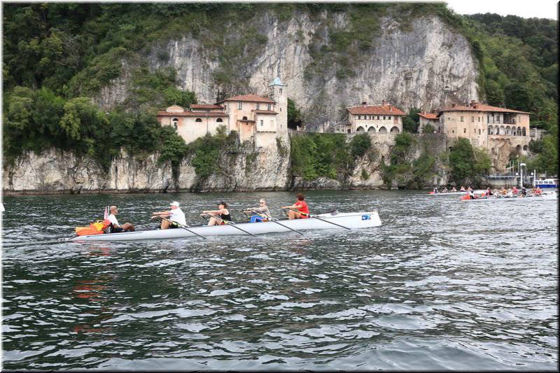 La quarta tappa ha permesso ai partecipanti anche di effettuare la visita forse più suggestiva, quella all’Eremo di Santa Caterina del Sasso. I vogatori hanno raggiunto il santuario via lago (ovviamente) e si sono fermati per circa un’ora accuditi da due guide inglesi messe a disposizione della Provincia. Quindi, dopo aver atteso migliori condizioni climatiche alla Canottieri Arolo, hanno ripreso la propria rotta.