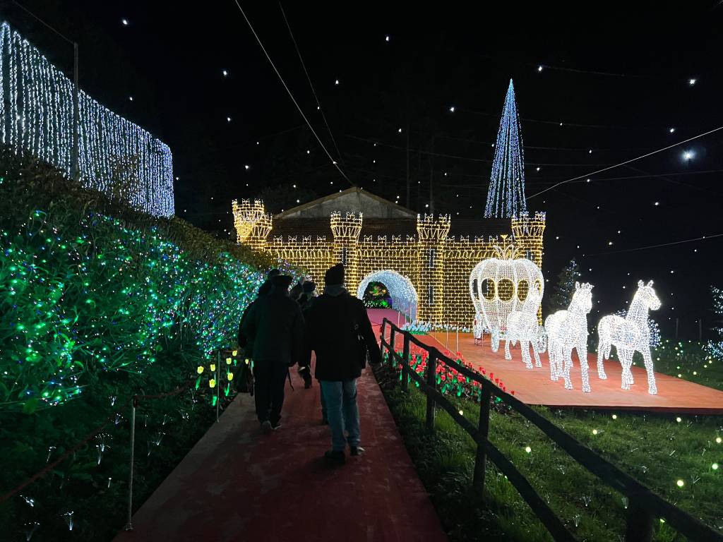 «Spero che questo lucine piacciano ai visitatori tanto quanto piacciono a me», ha commentato il signor Betti, l’ideatore delle lucine, pochi secondi prima dell’accensione. Poi, la magia: migliaia di lucine a led, lavorate a mano una per una, a creare un bosco incantato con la carrozza di Cenerendola dove fermarsi a fare una foto, il laghetto dei cigni, i pavoni, gli scoiattoli, una galleria di fiori bianchi, la fontanella e tanto altro. Una magia che si è rinnovata anche quest’anno e che, come ha detto uno dei tanti volontari impegnati nella manifestazione, «aspetta tutto il mondo».