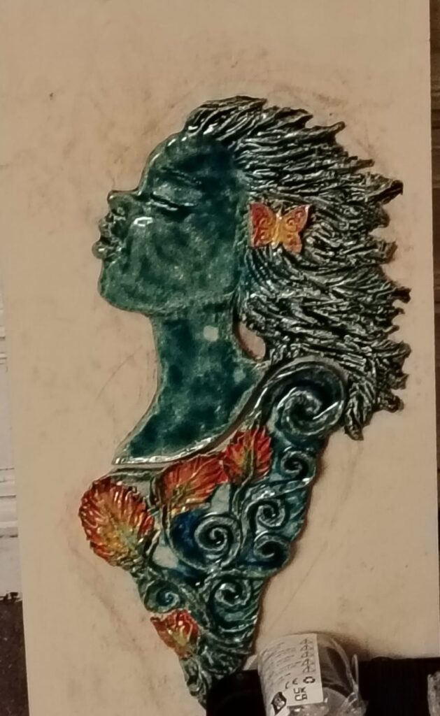 Artista poliedrica, Elisabetta Pieroni inizia la sua formazione con la lavorazione della porcellana di Limoges, per poi dedicarsi alla ceramica refrattaria, ai murales e ai quadri polimaterici. Le sue opere – basso e alto rilievo, lampade e installazioni – richiamano costantemente alberi, rami e radici, elementi fragili della natura che invitano alla riflessione. La sua ricerca artistica combina la tradizione artigianale con la sperimentazione contemporanea, arricchendo i bassorilievi con rame, ottone, ferro e frammenti di specchi. Le figure umane che emergono dalle sue opere rappresentano stati d’animo e sensazioni profonde, con un invito all’osservatore a tendere verso l’alto, verso l’eterna dimensione del pensiero e del sogno.