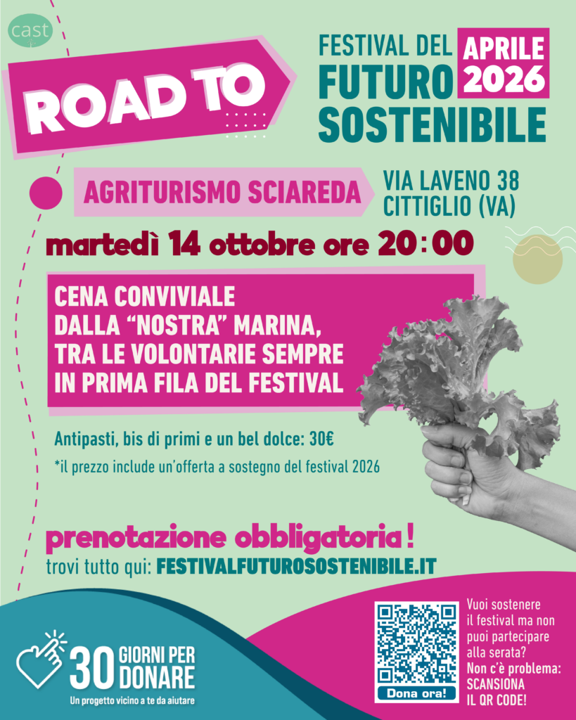 «Con la Road to Festival – spiegano da CAST ONG ETS – vogliamo tenere viva la comunità che ogni anno costruisce insieme a noi il Festival del Futuro Sostenibile. Non solo eventi, ma momenti per confrontarci, scambiarci idee e rafforzare il senso di rete sul territorio».