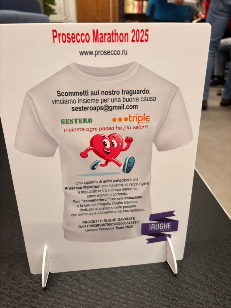 L’obiettivo della squadra è tanto semplice quanto ambizioso: arrivare tutti al traguardo entro i tempi massimi, camminando o correndo. Ma la vera sfida è raccogliere donazioni a favore del Progetto Rughe di Gavirate, attraverso la causale “Prosecco Team 2025” e l’IBAN dell’associazione.