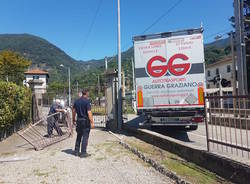 Le immagini del pesante automezzo che ha divelto una parte di recinzione di una casa nei pressi delle barriere ferroviarie