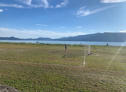 A Monvalle il campo di calcio sulle “nuove“ spiagge nate dal Lago Maggiore in secca